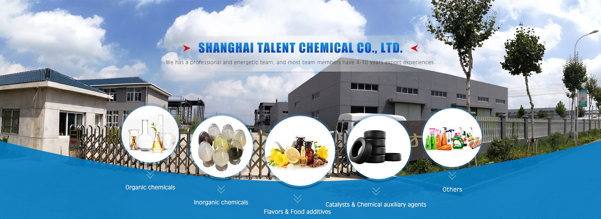 Shanghai Talent Chemical Co., Ltd. terletak di pusat ekonomi China---Shanghai, yang mempunyai lebih 30 pekerja dan 450㎡ pejabat sekarang. Kami pakar dalam menyediakan produk kimia yang banyak untuk memenuhi permintaan pelanggan, dan juga boleh menyediakan perkhidmatan produk yang disesuaikan. Pada masa ini, kami mengeksport terutamanya bahan kimia organik, bahan kimia bukan organik, perisa & bahan tambahan makanan, pemangkin & agen tambahan kimia, dsb.